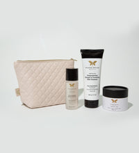 Elevate your skin routine and get this FREE vegan leather cosmetic bag with our Level-Up Skin Collection! This beautiful and effective collection of products will have your face gleaming with joy. It’s a marvelous trio of essentials that work for all skin types! Adding these three to your daily regimen will gently cleanse while keeping your face soft, reduce inflammation, help heal blemishes, shrink pores, balance the pH of your skin, and promote faster cell turnover with just the right amount of Retinol. The collection includes one Empowering Ginger & Turmeric Silk Cleanser, Glow Goddess Balancing Tonic and a Powerful 2.5% Retinol Moisturizer, plus the free cosmetic bag.